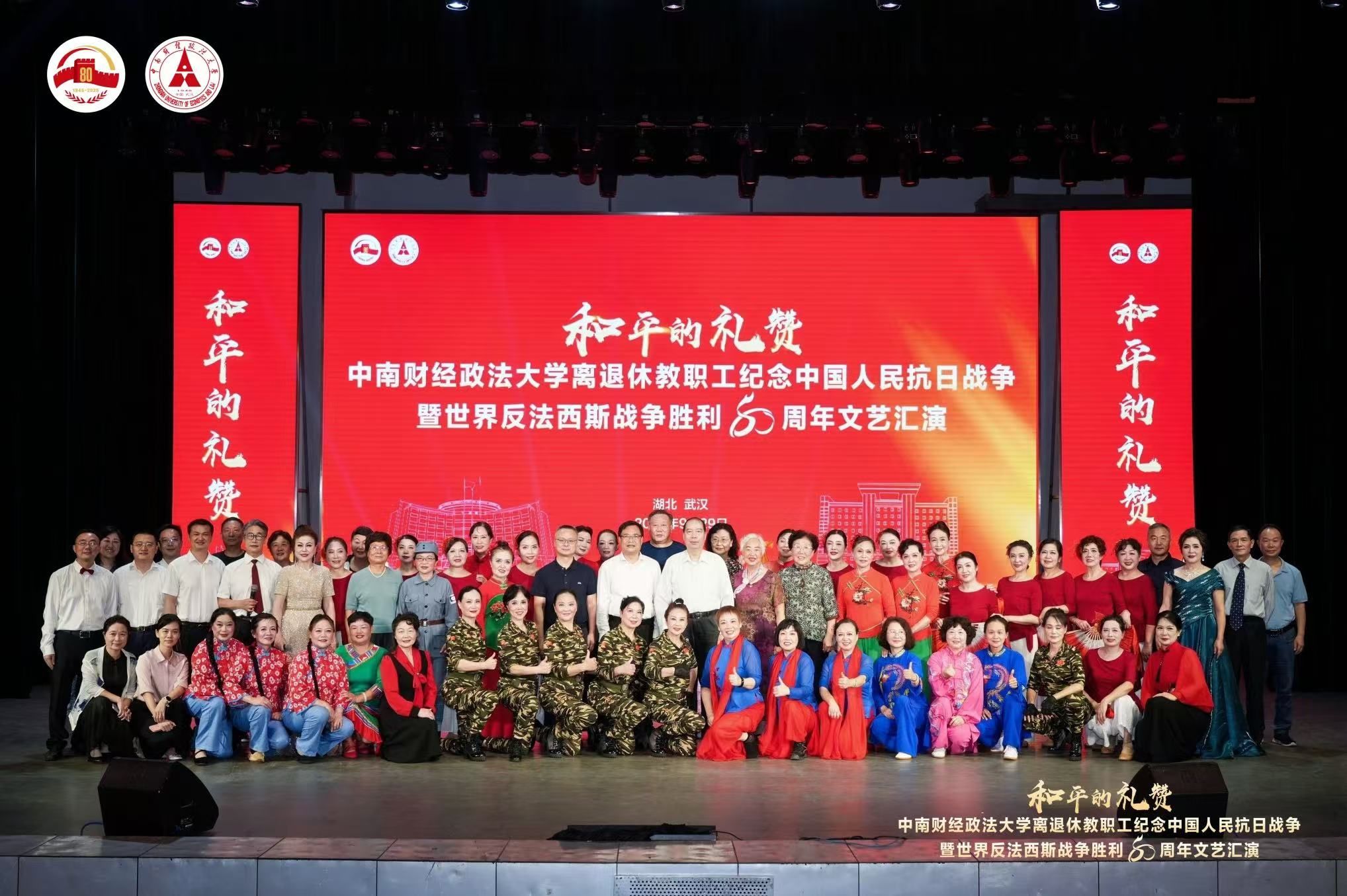新闻网讯(通讯员 王悦心 摄影 彭佳 程勇)为纪念中国人民抗日战争暨世界反法西斯战争胜利80周年,9月29日,“和平的礼赞”中南财经政法大学离退休教职工文艺汇演在南湖会堂成功举办。校党委书记侯振发出席活动并致辞,校党委副书记陈狮,校老年人协会会长徐敦楷,部分职能部门、学院负责人、校老年人协会全体理事参加。