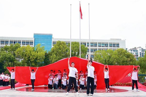 活动最后,全体师生挥舞国旗,齐声高唱《歌唱祖国》。