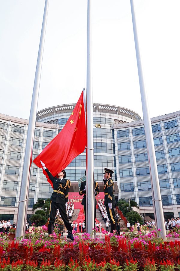 新闻网讯(通讯员 林昇 张凡稷 摄影 崔桢桢 徐蓦骁)为庆祝中华人民共和国成立76周年,纪念中国人民抗日战争暨世界反法西斯战争胜利80周年,9月29日,学校举行国庆升旗仪式暨第118期“国旗故事会”主题教育活动。校党委副书记陈狮,相关职能部门、学院负责人,300多名师生代表参加活动。党委学生工作部、人民武装部部长黄小妹主持。