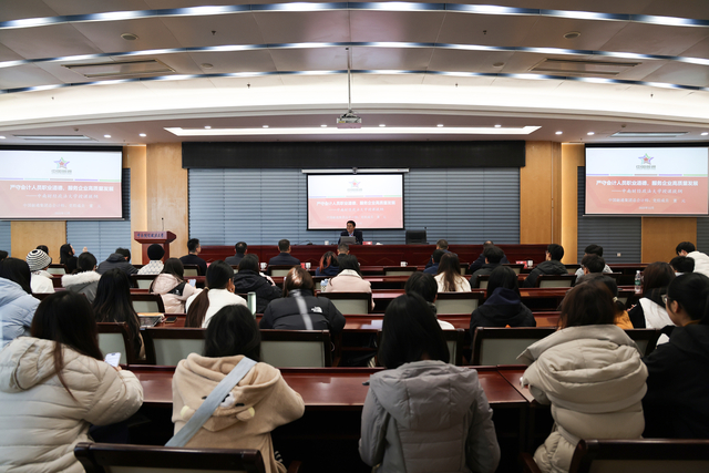 报告会上,董元以《严守会计人员职业道德服务企业高质量发展》为题,首先简要介绍了中国融通集团的战略定位与发展布局。随后紧扣我校校训精神,以“厚德立身 济世赋能”为主线展开授课。
