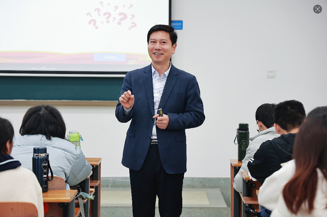 新闻网讯(通讯员 张星萍 摄影 崔桢桢)12月9日上午,校长、党委副书记朱方伟在文泰楼307教室,为统计2403、2404班本科生讲授题为《擘画“十五五”发展蓝图 接续推进中国式现代化》的思政课,马克思主义学院部分教师参与现场观摩学习。