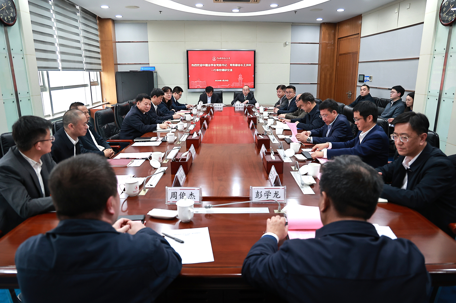 侯振发对王洪祥一行来访表示热烈欢迎,从人才培养、师资队伍、科学研究、学科交叉融合、国际交流、社会服务等六个方面汇报了我校法学一流学科的建设情况,并重点介绍了学校推动习近平法治思想“三进”、完善以实践为导向的法学院校教育培养机制,以及加强涉外法治人才培养的相关工作。他表示,中国法学会在指导法学教育、引领法学研究、法学法律人才培育等方面发挥了重要作用,恳请中国法学会未来能在理论阐释和实践研究、涉外法治人才培养、新兴学科建设等方面给予学校更多关心、指导和支持。今后学校将继续深入贯彻习近平法治思想和习近平总书记关于教育的重要论述,全面落实中国法学会各项工作部署,奋力谱写法学一流学科建设新篇章,为推进中国式现代化、建设更高水平的法治中国贡献更大的中南大法学力量。